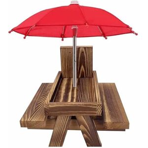 CUTE SQUIRREL FEEDER TABLE WITH UMBRELLA -- Comes with the red umbrella, our squirrel feeder table is the most cut designed. On both sides, the picnic table squirrel feeder is equipped with for squirrels. Guaranteed for unlimited fun and backyard entertainment. ️STURDY AND -- Our squirrel feeder made with naturally weather resistant wood and high quality construction.The Squirrel Bench is reinforced with multiple long wood screws from every angle of the chair. In addition, our umbrella is upgraded, lengthened and thickened, and can be intact in the wind ️EASY TO INSTALL -- The squirrel feeder is fixed by two nails. The product basically except for umbrellas doesn't need to be assembled, just need to be fixed on . In the middle of the feeder there is a screw to fix the food. You can put corn on top. ️LOVELY GIFT FOR SQUIRREL -- Perfect for squirrel and wildlife lovers, a special and exclusive gift for that special someone on . Squirrels can immediately notice the product and enjoy on