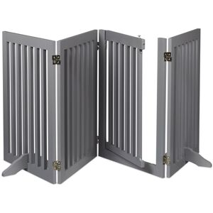Stairsand doors alike can potentially be a tremendous danger for pets and children.Thus, you can set up adequate protection with this adjustable safety barrier.It can be flexibly positioned in passages, by the oven or fireplace. 2 Feetensure the necessary stability. You can easily set the stair gate or fold it upfor compact storage when needed. The inconspicuous grey design blends into anyliving space. Please note the size of thegrid spacing when using the barrier grid. Safety Fence Details - Max. total dimensions: approx. H x W x D: approx. 70 x 207 x 30 cm - Dimensions per panel H x W x D: approx. 70 x 51 x 2 cm - Folded dimensions H x W x D: approx. 70 x 51 x 8 cm - Opening: approx. H x W: approx. 65 x 40 cm - Bar interval H x W: approx. 60 x 3.5 cm - Weight: approx. 11.4 kg - Material: MDF - Colour: Grey 4-piece stair guard for dogs andchildren - Can be used for kids and dogs - For doors, stairs, fireplace and oven - Incl. practical door with additional lock - Can be set up