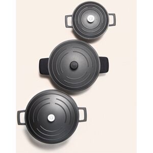 This set of three casserole dishes with panhandle sleeves is sure to suit all kitchens and is ideal for any culinary task. With three sizes included. In shallow dishes, you can cook your favorite stews, roasts, and casseroles for family dinner time, or use the larger dish for meal prepping and bulk cooking. The handy silicone covers are heat resistant to 250°C and fit onto the side handles and the knob on the lid, protecting hands from burns and enhancing grip. Made of the cast, a material that’s tough like cast iron but is significantly lighter and easier to handle, these dishes are great at conducting heat so food cooks quickly and evenly, both in the oven and on the hob. (plus, it’s safe for all heat sources, including induction.) There are also added two layers of its superior non-stick coating, to bring the goods when it comes to durability. The coating is scratch-proof and so effective as a non-stick that you can cook using little to no oil. The best-selling cast cookware shows that strong is beautiful and that heavy-duty doesn’t have to mean heavyweight. MasterClass