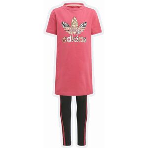 Graphic Print Tee Dress Set.Your star player is never too young for retro adidas style.So set your wild child free in this kids´ two-piece outfit.Your little one can throw on the slim-fitting tights and comfy dress and go.Something you both can agree on.Parenting win.Our cotton products support sustainable cotton farming.This is part of our ambition to end plastic waste.FEATURES:Tee dress:Ribbed crewneck.92% cotton, 8% elastane single jersey.Tights:Elastic waist.