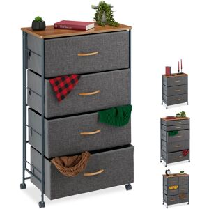 Extra storage space is handy no matter where you are in your home. Whether it is socks, toys, tissues, underwear or other utensils - with this chest of drawers, you can set the place in order. Its mobility is the big plus of this lovely piece. Thanks to the brakes, the cart can also be firmly set in one place. The folding fabric drawers have reinforcing inserts and handy wooden handles. Chest of Drawers Details - Ground clearance: app. 7.5 cm - MDF panel: app. 1.2 cm - Material: Steel, polyester, MDF - Top capacity: 20 kg - Capacity per basket: 5 kg Chest of 3 Drawers - H x W x D: app. 74.5 x 58 x 30 cm / app. 6.7 kg - Box inner size: H x W x D: app. 20.5 x 53.5 x 27 cm Chest of 4 Drawers - H x W x D: app. 93 x 58 x 30 cm / app. 8.1 kg - Box inner size: H x W x D: app. 20.5 x 53.5 x 27 cm Chest of 5 Drawers - H x W x D: app. 96.5 x 58 x 30 cm / app. 8.8 kg - Large inner box H x W x D: app. 20.5 x 53.5 x 27 cm - Small inner box H x W x D: app. 9.5 x 53.5 x 27 cm Chest of 6 Drawers - H