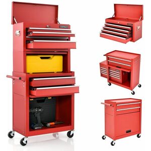 Make your tool room well-organized with this functional rolling tool chest! With high-grade metal structure, this 3-in-1 tool chest combo can withstand heavy weight, showcasing robust durability. With a top box, 6 drawers of varied sizes, 2-door bottom cabinet, middle storage compartment and side hooks for hanging tools, the tool cabinet offers ample storage space for your items. The top chest features auto-locks upon closing, safeguarded by a dual-key lock system, ensuring your tools are secured. And maneuverability is effortless with 10cm large wheels and a comfortable grip handle. This versatile cabinet thrives in various workspaces, enhancing efficiency whether in an auto shop or home garage. Costway 6-Drawer Rolling Tool Chest 3-in-1 Heavy-Duty Tool Storage Cabinet w/Wheels in Purple