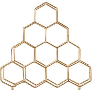 Made from sleek metal wires, this spice rack features 15 hexagonal sections which combine to form a honeycomb pattern. The geometric rack is finished in gold effect which lends it a luxe visual accent while contributing to the decorative appeal. Each angled space is designed to hold a standard-sized bottle over the countertop.