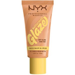 NYX PROFESSIONAL MAKEUP Buttermelt Glaze +SPF 30 - 08 Nutmeg ButtaDiscover the secret to a luminous, flawlessly glazed complexion with the NYX PROFESSIONAL MAKEUP Buttermelt Glaze +SPF 30 in the rich, warm shade 08 Nutmeg Butta. This innovative skin tint is your all-in-one solution for achieving a radiant, healthy-looking glow that lasts all day. Designed for those who crave a perfected yet natural appearance, this formula melts into your skin like butter, delivering a sheer, dewy finish that enhances your natural beauty without masking it.Experience the ultimate fusion of skincare and makeup. The Buttermelt Glaze provides buildable light-to-medium coverage, effortlessly evening out your skin tone and blurring the appearance of imperfections for a smoother, more uniform look. Its light-as-air texture feels incredibly comfortable and breathable, allowing your skin to look and feel its best from morning to night. Forget heavy, cakey foundations, this tint delivers a non-ashy, seamless finish that moves with you, ensuring you look fresh and radiant for up to 12 hours.More than just a cosmetic, this product is a powerhouse of performance. Enjoy the confidence of up to 12 hours of continuous hydration, leaving your skin feeling soft, supple, and moisturized throughout the day. Elevating the standard for modern make-up bases, this formula also provides crucial daily protection with Broad Spectrum SPF 30, helping to shield your skin from harmful UVA and UVB rays. It's the perfect daily essential for a protected, perfected, and luminous complexion.The shade 08 Nutmeg Butta is a beautifully crafted warm hue, perfect for medium-deep to deep skin tones, providing a natural-looking warmth and radiance. Whether applied with your fingertips for a quick, sheer wash of color, or built up with a brush or sponge for more coverage, the application is foolproof and blends seamlessly every time. Get ready to glaze up and glow with skin that looks instantly healthier, more radiant, and is protected from the sun.Technical Specifications:* Product Type: Skin Tint* Category: Makeup* Subcategory: Face, Make-up bases* Finish: Luminous, Glazed, Radiant* Coverage: Buildable Light to Medium* Wear Time: Up to 12 Hours* Hydration: Provides up to 12 Hours of Hydration* Sun Protection: Broad Spectrum SPF 30* Shade: 08 Nutmeg Butta* Key Features: Evens skin tone, blurs imperfections, non-cakey, non-ashy, light-as-air feel.* Formula: Vegan Formula, Cruelty-Free
