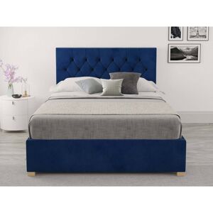 Offering style and storage, this upholstered ottoman bed is a contemporary solution for a bedroom. It is padded with foam and upholstered in a deep blue velvet-like polyester fabric, and the headboard has Chesterfield tufted detailing. The slats on this bed lift from the foot of the bed to reveal a generous storage area underneath, which can be used for clothing, bedding, and much more. A mattress is not included. Hashtag Home Mattress Size: Super King (6')