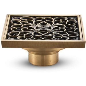 【SMOOTH DRAINAGE】 - This floor drain features a large displacement design, the mesh drain cover can be removed, and the double filter design prevents floor drainage. 【PREMIUM MATERIAL】 - Made of high quality copper, strictly antique surface with beautifully carved flower. Protects against corrosion and rust, which can last for a long time. NO OVERFILLING & 【ODOR】 - The floor drain at the bottom is designed to be resistant to spills and odors, suitable for use in bathroom balconies, vegetable gardens, etc. 【DIMENSION】 - Area 100 x 100mm / Installation depth 46mm / Drain diameter: 39mm / Weight: 340g -Strainer design, prevents the drain from clogging, prevents hair from entering the drain pipe and getting stuck. -This water trap made of solid brass is corrosion and rust resistant, old-fashioned. -Standard size, suitable for most interior decoration designs, easy to install. -Buy without worries, you can get a refund if you are not satisfied with anything at the moment. DETAILS