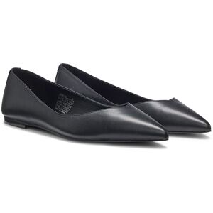 Ideal for everyday wear, these HUGO Womenswear ballerina flats are shaped in rich nappa leather with padded details for comfort. Pointed toe. Stacked-logo trim. This product contains at least 60% better raw materials. We continuously look for more responsible ways to produce and finish our products. A minimum of 60% of the leather used to make this product has been sourced from certified tanneries. Features:- Fastening top: Slip-onSpecifications:- Material: Innersole: 40% Polyester, 60% Polyurethane, 100% Sheepskin, Lining: 50% Polyamide, 50% Polyurethane, 50% Polyester, 50% Polyurethane, Quality: 100% Lyocell, Sole: 100% Rubber, Upper material: 100% Sheepskin