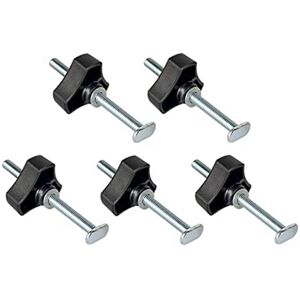Including: 5 M8 X 100mm T -rail bolt kit, including T -shaped bolts, knobs and washer. Compatibility: Support the 3/4 X 3/8-inch standard oblique cut slot (19mm), 30mm and 45mm T-Slot Track, use it to help you customize various fixtures and fixed devices to optimize the T-track system. Application: This T -bolt knob can be easily used to enhance various applications of applications, including T track fences, fences, thin tear fixtures, oblique fixtures, oblique cutters, stop blocks, hold clamps, etc. Material: The knob is made of polypropylene plastic, and the brass is inserted with molds, which not be peeled; T -shaped bolts made of steel; metal washing machines. Workman work: Sophisticated, strong, , and the large triangle knob is smooth and comfortable. Color: Silver & Black Material: metal+plastic Package Contents: 5 x T -rail bolt Only the above package content, other products are not included. Note: Light reflection and different displays may cause the color of the item in the