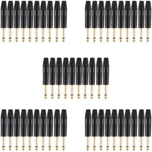 Connector Name: 6.35 Mono Straight Flower Tail Scope: Audio Jack Color: Black Material: ABS Size: Length: 95mm Package Contents: 50 x Mono Plug Only the above package content, other products are not included. Note: Light shooting and different displays may cause the color of the item in the picture a little different from the real thing. The measurement allowed error is +/- 1-3 cm.