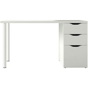 Description: Upgrade your home office or study area with the Vespera Arctic White Desk with 3 Drawers, designed to offer both style and practicality. With its sleek Arctic white finish and versatile storage options, this desk features two drawers on smooth metal runners and a spacious cupboard section, providing ample room to organise your office essentials. The reversible legs allow for flexible configuration to suit any room layout, making it an adaptable piece for your workspace. Specifications: Colour: Arctic White Dimensions: Width 138cm, Depth 60cm, Height 74cm Material: High-quality engineered wood with a smooth white finish Storage: 2 drawers, 1 cupboard section Desk Type: Suitable for home office, study, or computer work Package Includes: 1 x Vespera Arctic White Desk Assembly instructions Ebern Designs