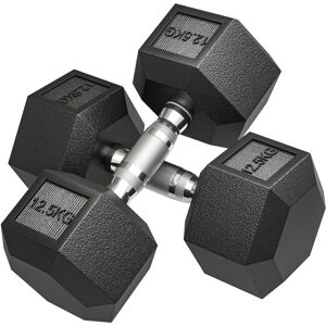 Strengthen your muscles in the most effective and easiest ways - go for this dumbbell set from HOMCOM. The 25kg weight is suitable for those accustomed to the heaviness only and can be used almost anywhere in the home and outdoors thanks to the small size. The frame is steel for a strong core and features knurl indents for grip. Both ends come in a weighted, hexagonal shape, so it doesn't roll away. The weight number is carved into the protective rubber cap for you to know which to use. Specifications: ● Colour: Black ● Material: Steel, Rubber ● Heavier Weight: 25kg ● Dumbbell Head: Φ14.8cm (corner to corner), Φ12.8cm (side to side) ● Dumbbell Length: 32.6cm ● Handle Length: 12.8cm ● Max Handle Diameter: Φ3.4cm ● Overall Encapsulation Thickness: 9.9cm ● Item Label: A91-020V01BK Just so you know: this item ships and arrives in separate boxes. Delivery times may vary with each box. Box quantity: 2 Features: ● Sold as 2 weights ● Helps build muscles, tone your body and keep you active