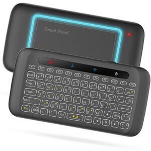 Touch panel coordination index can auto-rotate an adjust according to the handling position. Practical and convenient operation touch panel and keyboard designed. Whether the touch panel works or the keyboard works depends on which side is upward. Build-in colorful backlight on the keyboard, more easy to use in dark situation. Wireless air mouse for remote control, practical and portable. Type:Wireless Air Mouse Connection Port:USB2.0 or above Transmission Mode:2.4 GHz Wireless Transmission Distance:up to 10 meters Frequency Transmission:2400-2483 MHZ (16 Channels) Transmission Power: less than equal 4bd Power Supply:Built-in Lithium-ion Polymer Battery (Included) Charging Voltage:5.25V-4.4V Charging Current:300mA Operating Current:Less than 15mA (Backlight Off) Dormancy Current:Less than 100uA Features: Keyboard, Touchpad, Easy Operation, Universal, Backlight, Wireless Colour:Black Material:plastic Size:145mmx75mmx13.5mm/5.71inchx2.95inchx0.39inch(.) Package Contents: 1 * Wireless