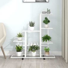 General description This flower stand is an excellent choice for displaying your plants and decorative items. Made of sturdy and durable white powder-coated metal, it ensures years of service while providing ample space for your lovely plants. The inclusion of wheels makes it easy to move, and the surface can be easily cleaned with a damp cloth. Technical specifications Colour: White Material: White powder-coated metal Dimensions: 94.5 x 25 x 92.5 cm (W x D x H) Features four wheels Assembly required: Yes Other information
