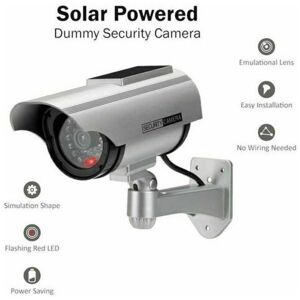 Authentic Look: This professional-grade solar dummy security camera is just like a real CCTV camera, which will deter theft, robbery, and vandalism without the high cost of a real security camera.(Silver-1 Pack) Solar Powered: The solar system will work automatically in a well-lit environment during the day. And if you want the light to flash at night or indoors, you need to install 2 AA batteries, which are not included in the package. Flashing LED: The LED light will flash under the solar system or AA batteries. This makes it more realistic than a real security camera and tricks everyone into thinking your home is being monitored all the time. Installation: Easily install it on the wall or ceiling with the provided screws. No wiring or electrical outlets are required. Indoor or Outdoor Use: The fake camera can be used indoors or outdoors, such as homes, schools, factories, offices, etc.