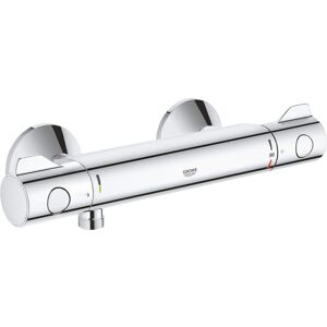 ceramic head part 1/2", 180° shower bottom outlet 1/2" GROHE TurboStat compact cartridge with wax thermoelement GROHE Grohtherm 800 shower thermostat – precise, reliable temperature control with safety features The GROHE Grohtherm 800 shower thermostat ticks all the boxes for shower-loving households, with an even temperature guaranteed and additional eco and safety features. The temperature is easy to set with the ergonomic, easy-grip handles and the intuitive GROHE EasyLogic markings on the tap body. GROHE TurboStat technology will ensure the selected temperature stays constant for the duration. Concerned about conserving water? The GROHE EcoJoy function with EcoButton will reduce water consumption by up to 50% without compromising enjoyment. Great for families, the GROHE SafeStop system offers a temperature limit preset at 38°C to prevent scalding. The dazzling GROHE Starlight stainless steel finish is scratch-resistant for a pristine look for years to come. Features: wall mounted