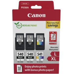 This Canon multi pack is your affordable solution to long-lasting printing. It includes two packs of 11ml Canon PG-540L high yield black cartridges that can print up to 300 A4 documents per cartridge, and one pack of the 15ml Canon CL-541XL high yield colour cartridges for printing up to 400 pages of vibrant colour. Genuine Canon Ink promises better quality and better reliability, meaning that you can print more for less.