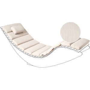 Cushion for Sunbed. A stylish and generously padded garden lounger cushion that offers exceptional comfort for relaxing outdoors. Its deep tufted design and elegant headrest add a touch of modern charm to any garden setting. The cover is made from durable, low-maintenance polyester that’s resistant to light rain and UV rays. A perfect blend of function and style, it’s an ideal finishing touch for any sun lounger. Details: Product Type: Outdoor Seat Pad Style: Modern General Color: Beige Shade: Light Beige Material Type: Fabric Main Material: Fabric Filling Material: Foam Material Composition: 100% Polyester Shape: Rectangular Pattern: Solid Recommended for: Sun Loungers Dimensions: Width: 56 cm Length: 192 cm Height: 5 cm Weight: 2.5 kg Offer Includes: 1 x Cushion Key Features: Practical Ties to Ensure a Secure Attachment, Thickly Padded for Utmost Comfort, With Classic Decorative Tufting, UV Resistance 6 (ISO 105-B02), Oeko-Tex ® - Standard 100 Certified, Water-Resistant Thanks to