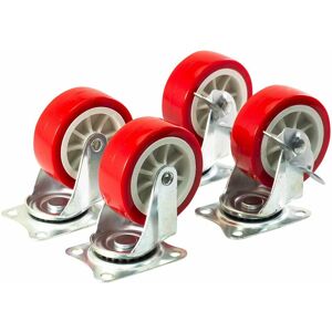 Ideal Wheels for moving furniture, toolboxes, and storage containers. Heavy duty wheels rotate 360 degree. With dual braked mechanism, it locks both the wheel and the swivel simultaneously. Non-marking and durable PVC castor wheels offer the elasticity of rubber wheels combined with the toughness and durability of metal wheels. 2 braked & 2 unbraked 3 inch (75mm) castors with a 50KG per wheel load capacity. .