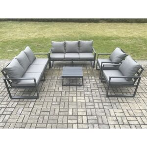 Set Dimensions: 2 x 3 Seater Sofa: 166W x 73D x 78H cm 2 x Side coffee table 68L x 68W x 59H cm 2 x Big footstool 60L x 60W x 35H cm 1 x PC dining table with fire pit: 140L x 80W x 70H cm (Aluminum table top Without glass) Dark grey powder coated with dark grey fabric .Color may vary little due to light or monitor .we are unable to return the item due to color problem .please contact before purchase if you have requirement on color saturation. the product is delivered on pallet, to kerbside only. Fimous Aluminium Outdoor Lounge Sofa Garden Furniture Sets Gas Fire Pit Dining Table Set with 2 Big Footstools 2 Side Tables Dark Grey
