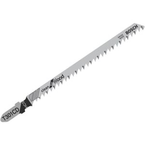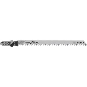 Bosch: T301 CD Clean for Wood Jigsaw Blades - PQ-5 T301 CD Clean for Wood Jigsaw Blade delivers clean straight cuts in wood. Precision-ground teeth with taper-ground body produce clean results. High carbon steel blade material is appropriate for cutting softwood and non-abrasive woodworking materials. Medium tooth pitch (3 mm) and long length (117 mm) cut wooden materials with 10-65 mm thickness. For use with jigsaws with T-Shank clamping systems. MPN: 2608637590 EAN: 3165140016308 T301 CD Clean for Wood Jigsaw Blades - PQ-5 Attributes: Application: Laminated Panels Plywood Softwood Wood Blade Length: 117mm Blade Material: HCS - High Carbon Steel Cut Type: Straight Clean Cutting Action: Clean Straight Cutting Application: Softwood Wood Plywood Laminated Panels Cutting Edge Type: Ground Taper Cutting Material: High Carbon Steel Depth of Cut: 10-65mm Item: Jigsaw Blade Sets MFR Part No.: 2608637590 Number of Pieces: 5piece Overall Length: 117mm Pack Quantity: 5 Shank Type: T-shank Tooth