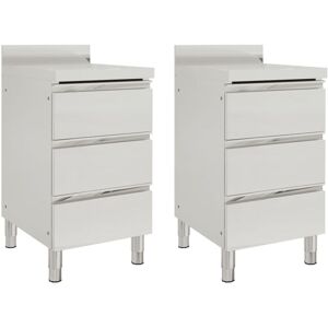 If you want to keep your kitchen supplies, the commercial kitchen cabinet is a perfect choice for you. It can be widely used in restaurant, hotel, food production, gastronomy use or garage, workplace and home use. Made of quality stainless steel, the storage cabinet is robust, anti-corrosive and easy to clean. The cabinet provides ample storage space for cleaning equipment and accessories. Additionally, the adjustable feet keep the cabinet level on uneven floors. The 10 cm backsplash and water pipe hole are also included. You can find the commercial sink cabinet, drainboard cabinet and work table cabinet in our webshop. They can be connected with each other to meet your specific needs. Assembling accessories are included in the delivery. Colour: Silver Material: Stainless steel With a 10 cm backsplash With height-adjustable legs to fit uneven ground Cabinet: Dimensions: 50 x 60 x (95-96) cm (W x D x H) 3 drawers with smooth rails Food grade stainless steel Cabinet: Dimensions: 60 x 60