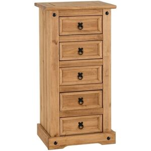 Introducing the Corona 5 Drawer Narrow Chest in Distressed Waxed Pine the slim and stylish storage solution that's here to elevate your decor game! Crafted with enduring charm, this chest takes distressed waxed pine and pairs it with classic design. With five vertical drawers, it's the perfect space-saving storage solution for those tight spots. Whether you're organizing your socks or showcasing your quirky collectibles, this chest has got you covered. Easy to assemble and brimming with character, it's the unique addition your room craves. Level up your decor with the Corona 5 Drawer Narrow Chest where rustic charm meets space-saving brilliance. Don't hesitate; order now and redefine your decor with style!