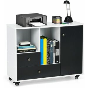 Why You Choose us? √Ample storage room for practicability √Modern style for decoration 1.Considerable storage and display spaces have been offered to you with 2 open shelves, 2 concealed adjustable cubbies, 2 drawers, and a wide cabinet top. 2.4 steel casters make this lateral filling cabinet more convenient to rearrange locations while adding more stability with braking systems. 3.High-quality engineered wood with a bulky load-bearing 85kg,is suitable as an office filing organizer, printer stand,a kitchen rolling buffet, a storage sideboard, and so on. 4.Feature an elegant appearance agreeing to all the office themes,round handles, easy-glide rails, metal hinges, and a magnetic snap for easy access 5.Easy to install and maintain with a sleek surface Specifications: Color: White + Black Material: Engineered Wood Product Dimensions: 90 x 35 x 70cm (L x W x H) Big Drawer Dimension: 56 x 31 x 16cm (W x D x H) Small Drawer Dimension: 30 x 31 x 16cm (W x D x H) Big Drawer Inner Dimension:
