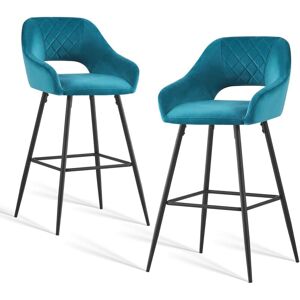 Ainpecca - 2pcs Dark teal Bar Stool Velvet Seat w/Backrest &Armrest Metal Leg Kitchen Breakfast