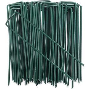 【Rustproof】Hot-dip galvanized green coating for better rust protection, suitable for securing artificial grass. 【Design】: This set of garden pegs is designed with beveled ends for easy penetration into the ground and mesh. Includes 50 pieces, length 150 mm, width 30 mm, diameter 3 mm. 【Characteristic Design】The trapezoidal design can increase soil tension. The beveled end can be installed quickly and securely into the ground. 【Repeated Use】The fixing nail is energy-saving and environmentally friendly. Made of stainless steel, the fixing nail is anti-aging and has strong oxidation resistance. 【Multi-purpose】 Useful for lawn, garden, vegetable garden, greenhouse, flower bed, mulch cover, weed cover, fixed pipe, cable block, weed cover, artificial grass, fence, camping tent.