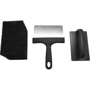 [PROFESSIONAL CLEANING TOOLS]- Griddle Cleaner Kit is the upgrade tools set, professional and efficient. Includes 1 stainless steel griddle ,5 Scouring Pads and 1 handle. This grill cleaning tool kit is the perfect addition to any backyard kitchen. [PREMIUM QUALITY]- Each tool is made to a high standard, perfect for any novice or professional alike. Made of premium stainless steel and high quality composite, This griddle cleaning set is built to last, keeps your Griddle cooking clean. [GRIDDLE ]- The 23x16.2cm Griddle with comfy heat resistant handle and rust-resistant stainless steel blade, helps you easy to remove debris, sturdy stain, and other baked-on residue. It is designed to clean griddle or grill grates and help remove cooked-on grime. [CLEANING BRICK]- Used to remove the BBQ encrusted greases, stains, residues and dirt. Also good on porcelain enamel, cast iron, stainless steel and particularly from flat-top griddles, grills, oven trays [CLEANING BRUSH]- Grill Cleaner Pads