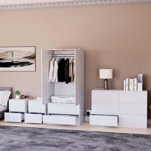 Introducing our sleek and sophisticated Denver Bedroom Furniture Set, designed to transform your bedroom into a modern sanctuary. This set includes a 2-drawer bedside chest, a chest of drawers, and a 2-door 2-drawer wardrobe, offering a complete and cohesive storage solution. Each piece in this set features a minimalist modern design, characterized by clean lines and a handle-free aesthetic that enhances any bedroom decor. The handle-free drawers and doors provide a streamlined, uncluttered look, perfect for contemporary living spaces. The 2-drawer bedside chest provides convenient storage for nighttime essentials, while the chest of drawers offers ample space for clothing and accessories. The 2-door 2-drawer wardrobe includes a hanging clothes rail, providing generous space for both hanging and folded garments, ensuring your wardrobe stays organized and easily accessible. Crafted from high-quality materials, this bedroom furniture set is built to last, promising long-term durability