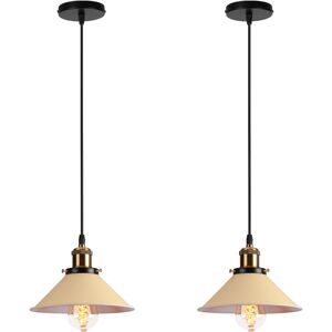 【Design】 - Vintage, Retro, Industrial, delicate..... 【Dimension】 - lampshade diameter: 22 x 16.5cm; Disc diameter: 10cm 【Cable】 - 100 cm cable, adjustable length, DIY lighting like the ceiling light too 【Color】 - White interior lampshade and light yellow exterior, brass cup lamp and black disc 【Specification】 - Voltage: AC110-240V; Power: 60 W maximum 【Bulb】 - E27 socket; Applicable bulbs: Edison bulbs/LED bulbs/energy-saving lamps/halogen lamps; bulb not included 【Application】 - Suitable for cafes, bars, clubs, living rooms, bedrooms, kitchens, restaurants, offices/home offices, porches, laundry rooms, halls, porches, garages and patios 【packaging】 - 2x lampshade; 2x 100cm cable with E27 socket; 2x ceiling disc; 2x installation parts(bulb not included) 【Easy Installation】 - Lamp is made of metal. materials makes the lamp durable. Easy to assemble