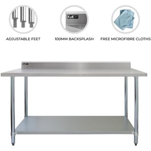 Greasy spoon café or Michelin star restaurant, wherever you are you need somewhere to prepare all that yummy food. So that ideal work surface has gotta be the right size, easy to clean and (most importantly) hygienic! Well stop the search because here's the KuKoo Catering table measuring approximately 6ft wide and lovingly made from corrosion resistant - plus it's easy to clean 430 stainless steel, so these tables are perfect for any kitchen. Approximately 6ft wide Made from stainless steel grade 430, which is corrosion resistant (particularly useful for cooking with acidic food like tomato sauce or fruit) Cleaning made easier with the 100mm upstand and it protects the wall Store stuff on the lower shelf which can adjust up or down the table for easier storage And even adjust the individual feet to keep it steady on uneven floors 250kg weight capacity Flat packed for easy assembly FREE 2 x Microfiber Cloths for perfect cleaning Stainless Steel Work Surface The adjust-ability means you really can make each commercial table perfect for your kitchen. Folding up bits of paper will be a thing of the past, with this work bench you can twist and correct the feet to keep it steady. Plus, you can store stuff on the lower shelf which is just fab if you like to keep things tidy and it can be moved up or down the table legs depending on how what you’re storing. The tables can sit side by side thanks to the flat edges or next to appliances like the fridge, and the back of the up-stand will sit against the kitchen wall. Don’t forget that the table isn't fixed in place like your work surfaces at home – so if you wanna mix it up a bit you can move it wherever you like. Specifications: Dimensions: 90cm H x 180cm W x 60cm D Weight: 33kg