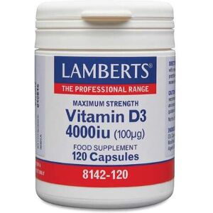 LAMBERTS Vitamin D3 4000 IU - 120 x 100mcg Capsules LAMBERTS Vitamin D3 Capsules provide 4000 IU of vitamin D per capsule, essential for bones and a healthy immune system. During the winter months and as we age, our ability to manufacture vitamin D from sunlight declines. These high-potency, easy-to-swallow tablets have been pharmaceutically tested to GMP standards and are ideal for maintaining your vitamin D levels. Vitamin D is renowned for its vital role in maintaining normal bone health, but it also acts on cells in every organ of your body and has extremely far-reaching effects on your health. Provides 4000 IU of vitamin D3 Supports normal bones, teeth and muscles Supports normal immune function High potency, one-a-day dosage Small, easy-to-swallow capsules Produced to pharmaceutical GMP standards Made in the UK About Lamberts LAMBERTS is the UK's leading supplier of food supplements to Practitioners, GPs, Nutritionists and Pharmacists who use nutrition in healthcare. Their healthcare philosophy consists of sound science - they only develop health products supported by a valid scientific rationale, and always at the right potency for maximum benefit.