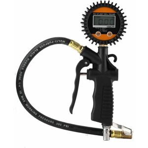 Features: Essential air compressor accessory for fast and accurate tire inflation. The pressure gauge monitors the pressure as it is inflated, eliminating the need to refill multiple times and then check the pressure. LCD screen digital display, you can clearly read the number even at night. Made of zinc alloy material, durable and practical. Clip-on design allows for hands-free use of the tray. Can be connected with air pump, vehicle engine dust purge. The air bleeder switch will adjust the air pressure when the tire pressure is too high. 33 rubber hose, can in the corners, convenient to use. Suitable for cats, bicycles, motorcycles, cars, etc. Specification: Condition: 100% brand new Material: zinc alloy Color: black Hose length: 33/ 13. 0 inches Measurement range: 0- 220 psi, 0- 16 bar Power supply: 2 AAA batteries Package weight: approx. 413g Package List: 1 * Tire Inflation Gauge 1 * Connector Cable 2 * Batteries Note: When you measure the air pressure of the tire, the tire