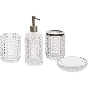 Glamour Bathroom Accessories. This 4-piece accessory set will add a glamour touch to any bathroom decor. Made from dolomite in a bold gold, glossy finish, it will decorate any bathroom counter top. In addition to being a stylish accent piece, it will also help you organize your cosmetics. The set consists of a dispenser and soap dish, a toothbrush holder and a container with a lid that is perfect for storing cosmetic pads. Details: Product Type: Bathroom Accessories Set Style: Modern General Color: Gold Shade: Light Beige Material Type: Ceramic Main Material: Dolomite Ceramic Additional Material: Synthetic Material Finish: Gloss Dimensions: Depth: 7 cm Width: 7 cm Height: 18 cm Overall Dimensions: 10x10x18 Weight: 0.8 kg Offer Includes: 1 x Soap Dispenser, 1 x Tumbler, 1 x Toothbrush Holder, 1 x Soap Dish Key Features: Decorative Yet Functional, Elegant Design, High Quality, Easy Care and Durable Materials Assembly Information: Does Not Require Assembly Maintenance tips: Dolomite
