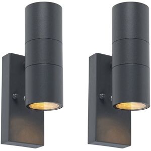 QAZQA Set of 2 Outdoor Wall Lights Dark Grey 17.5 cm Incl. LED - Batt Video A minimalist lamp, but oh so atmospheric. The Batt LED wall light can be used in many different spaces. With an IP rating of 65, this wall light can be used in the bathroom, but also just as easily outside. Top quality outdoor lamp made of high-quality aluminium with a polyester powder coating. With the 'high power' LEDs, this lamp gives off a lot of light with low consumption. The lamp has a depth of 3 cm, a height of 9 cm and a width of 17.5 cm. The lamp has 2 LED light sources with 6 watts, 686 lumens and 2700 Kelvin. The Batt also has an average lifespan of 30,000 hours. The combination of quality, design, efficiency and light output makes this lamp suitable for many applications both indoors and outdoors, so ideal! Now even in a set of 2! Bulb holder: (non replaceable) LED . Max 2 x 13.5 W, 12 V Suitable for: LED Connecting voltage: 220V/230V Protection class: IP65 Non-Dimmable,No, without cord and plug