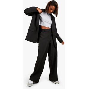 Boohoo Womens Straight Leg Relaxed Fit Tailored Trousers - Black - Size 16 Uk