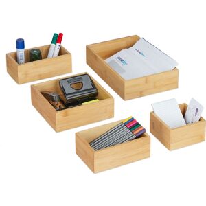 To work effectively at your desk, a certain amount of order is definitely advantageous. With this desk organiser, you can ensure that your drawers are neat and tidy. You can store pens, notes, calculators and other office utensils in the 5 baskets. The bamboo boxes also do a good job in the kitchen or bathroom and ensure that spices, kitchen gadgets, cosmetics and make-up are clearly arranged and always within reach. Organising Boxes in Detail - Dimensions largest box H x W x D: approx. 6.5 x 27.5 x 18 cm / 390 g - Dimensions second largest box H x W x D: approx. 6.5 x 18 x 18 cm / 300 g - Dimensions of third largest box H x W x D: 6.5 x 16.5 x 11 cm / 210 g - Dimensions fourth largest box H x W x D: 6.5 x 18 x 9.5 cm / 190 g - Dimensions of smallest box H x W x D: 6.5 x 11 x 11 cm / 150 g - Material: Bamboo, MDF - Colour: natural Bamboo Organiser System - Store small items neatly - For tidier drawers - Ideal for the office, kitchen or bathroom - Made of lovely decorative bamboo with