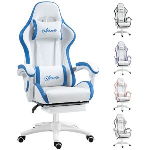 - 135° reclining back - lean back at an angle you want. Manual footrest to elevate lower body - 45.5-53.5cm adjustable height - Removable head and lumbar pillow included - White faux leather upholstery, with a coloured border - Five wheels and swivel seat works with your body movements - Maximum load 120kg, assembly required