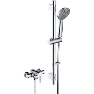 All in one box - pack includes shower valve, hose, hose retainer, riser rail and a rub-clean anti-limescale single function handset so nothing to buy separately. Easy installation with adjustable elbow inlets which enable you to use on existing pipework centres between 110mm and 155mm so there's no need for retiling. Rub-clean handset - limescale and debris build-up is quickly and easily removed by rubbing a finger or a cloth over the nozzles. A hard-wearing, flawless, scratch resistant chrome finish that lasts for years. Salt spray tested to ensure added durability. Thermostatic cartridge with preset temperature safety stop at 41°C for family-safe showering. Automatic shut-off in the event of hot or cold water supply failure for family safe showering. Single sequential lever to control both flow and temperature in one. 5 year parts and 1 year labour guarantee for peace of mind.