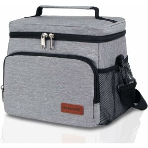 High Quality Material The outside of the lunch bag is made of 1680D Oxford water resistant fabric, it keeps stored items dry and clean. The inner liner was made of food grade PEVA sheet and padded with 14mm EPE foam for excellent thermal resistance. Large Capacity With 2 Compartments and 1 Private Pocket Premium PEVA lining provides excellent thermal resistance to keep food fresh and hot/cold. The private pocket on the back allows you to store your valuables. Easy to Carry Designed with a padded handle and a detachable shoulder strap that provides multiple carrying ways and allows for hassle-free transportation. You can use it as a backpack, a handbag or even a shoulder bag. The wide opening allows easy loading and unloading and the top zips allow easy sliding. Convenient to Use Multifunctional Use Sleek Design
