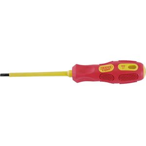Expert Quality, tested to 10kV, suitable for working on live circuits of 1kV AC and 1.5kV DC. Made with SVCM alloy steel blades which are hardened, tempered and chemically blacked. Fully insulated ergonomic soft grip handle with deep set blade sheath for total safety. in individual storage hanger with barcode on reverse. Manufactured and individually certified to EN 60900 Features and Benefits • Expert Quality • Fully insulated handle and blade sheath for total safety • Tested to 10kV, suitable for working on live circuits of 1kV AC and 1.5kV DC. • Conforms to EN 60900:1994, DIN 7437 and 7438 • Made with SVCM alloy steel blades which are hardened, tempered and chemically blacked Contents 1 x VDE Approved Fully Insulated Plain Slot Screwdriver, 5.5 x 125mm (Display Packed)