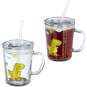 The children's drinking glass set enchants with its adorable chicken motif and is as cute as it is practical. The glasses have lids and straws and are therefore also particularly suitable for taking along. If you don't want to drink with a straw, simply use the separate drinking opening in the lid, which - just like the straw opening - can also be easily closed. After use, the glass cups can be cleaned in the dishwasher. Glass Cups in Detail - Dimensions with lid H x W x D: approx. 12 x 12 x 9 cm - Volume: approx. 400 ml - Weight: approx. 400 g - Material: Glass, ABS, silicone - Colour: Transparent, yellow, white Further Information - Set of 2 Cups - For temperatures between -20 and 100°C - Maximum temperature difference is 38°C - Glasses without lid and straw are microwaveable Space Glass with Lid and Straw - Cute chicken motif is perfect for children - For water, juice, tea, soda and many other drinks - Lid with opening for straw and extra drinking hole - Use without lid as a simple