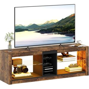 Transform your living room with the HOMCOM TV stand, tailored for up to 65" screens on a 140 cm top. Dive into a visual delight with 4 open shelves and a private compartment to stash all your gadgets. Brighten the mood with removable LED light strips, offering 7 enchanting colours, all controlled with a handy remote. A sleek companion for any modern home!