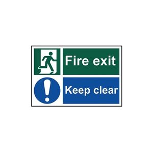 Every fire door should have an appropriate "Fire door" sign fitted. Where doors can be used from either side a sign is required on both sides. Doors which open on to a fire escape corridor should be locked shut and signed accordingly.Material Options ExplainedChoose the right material for your application:.Rigid Plastic: Lightweight, gloss white PVC with high impact strength. Suitable for both internal and external safety signs. Easily drilled for wall fixing.Self-Adhesive Vinyl: A high gloss, flexible PVC vinyl with self-adhesive backing. Suitable for applying to most smooth, dry and clean surfaces. Ideally suited for internal signs.