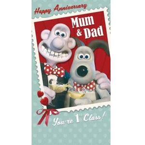 Size: 9 x 6 Inch Includes Envelope Celebrate Father's Day with this Official Wallace & Gromit Happy Father's Day From Both of Us. Wallace and Gromit are the main characters in a British series created by Nick Park of Aardman Animations. The cover of this Father's Day Card has the wording 'HAPPY FATHER'S DAY FROM BOTH OF US YOU'RE A 1ST CLASS DAD!' and the inside reads "Wishing you a Cracking Day!" There is plenty of space to write your own personal message in this card and an unsealed envelope is included.