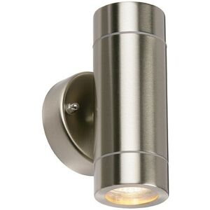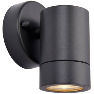 Palin Outdoor Up Down Wall Lamp Matt Black Paint & Clear Glass IP44 Finish: Matt Black Paint & Clear Glass Material: Stainless Steel (304), Glass IP Rating: IP44 Height: 21cm Width: 7cm Projection: 10.8cm Lamp Type: GU10 No. of Lamps: 2 Dimmable: Yes Lumens: 700Lm Wattage (max): 2 x 7W