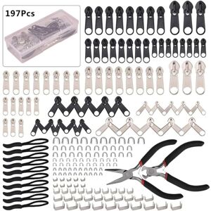 This set contains 197 zipper repair parts, including black and silver zipper sliders, top and bottom stoppers, zipper installation pliers, perfect for DIY projects and zipper repairs, metal material, stronger, more durable, smooth surface and texture. 3, 5, 8, 10 zipper repair parts, silver zipper sliders in 4 different sizes and 2 different colors. With this zipper rescue program, you can repair all kinds of items yourself, very cost-effectively and improve your practical skills. Our zipper replacement accessories include two different zipper fixing clips for easier attachment of the zipper stopper, a transparent storage compartment for easy storage and carrying, and a transparent box for easy access to the opened box. Zipper repair kits can be used to repair clothes, bags, outdoor tents, jackets, jeans, jackets, wallets, suitcases, backpacks, etc., saving you money on buying new models and having enough spare parts for other uses. /li> 27 black sliders (3, 5, 8, 10), 27 silver