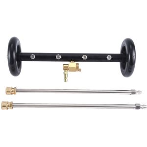 Description: Easily connects to many pressure washers. 65 degree fan-shaped large area cleaning nozzle for improved efficiency. Easy to clean and avoid crawling under a vehicle. Clean road grime, oil and fuel contaminants under cars, trucks, SUVs, commercial-size vehicles and trailers. 1/4 inch male plug for quick disconnect. Easy to connect and release. Connect under car washer to pressure washer wand. In order to handle wand easily, can connect it to pivoting coupler, then connect pivoting coupler to wand. color: Black material: metal Package Contents: 1 set of dual-function underbody brushes Only the above package content, other products are not included. Note: Light reflection and different displays may cause the color of the item in the picture a little different from the real thing. The measurement allowed error is +/- 1-3cm.
